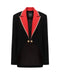 Veste cintrée à boutonnage simple en satin violet dotée d'épaules oversize et de deux ouvertures sur le devant. Ce modèle est complété par un col asymétrique et une fermeture à double bouton. Le mannequin porte une taille 36 et mesure 175 cm.