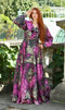 Robe Maxi blanche à motif floral. Cette élégante robe longue présente des manches et un col en V plongeant, avec une découpe taille haute qui met en valeur la silhouette. La jupe, ample et fluide, est dotée d'une fente au niveau de la cuisse pour donner une touche de sophistication.