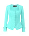 A stylish blouse that stands out with its coral color. A garment featuring a cutout under the bust, a square collar and long sleeves with French sleeve cuffs, which highlight your extraordinary personality.