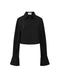 A blouse with puffed sleeves that stands out for its urban chic look. Ideal for mid-season and everyday life. It complements casual and sporty outfits by adding a touch of style with its lapel collar with bow and large Swarovski crystal button.