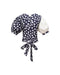 The wrap blouse is fully adjustable to suit your preferences. You have the option to wear it crossed in the back or crossed in the front. Made from two-tone cotton, this blouse features puffed sleeves for an extra touch of elegance.