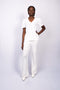 Rust-colored knit set, featuring a top with rust shades and an iridescent appearance, thus providing shine to this piece. The pants also offer the same features, with a discreet elastic band at the waist to make them easier to put on.