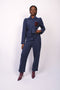 The carrot-shaped pants are made with a solid-colored wild silk band belt and pockets on each side. It also includes a wild silk yoke to highlight the geometric patterned silk jacquard pants.