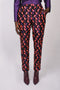 The high waist highlights the silhouette, adding a touch of elegance to the pants.
