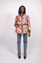 silk jacquard coat with removable sleeves. Piping details on the sleeves, pockets, waist and collar.