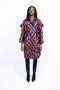 We present to you a multicolor silk jacquard jacket, featuring a hood and an adjustable drawstring at the waist to highlight your figure.