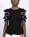 This dual material side adds an interesting dimension to the crop top. The combination of the elegant drape at the front with the puffed sleeves creates a look that is both feminine and modern.
